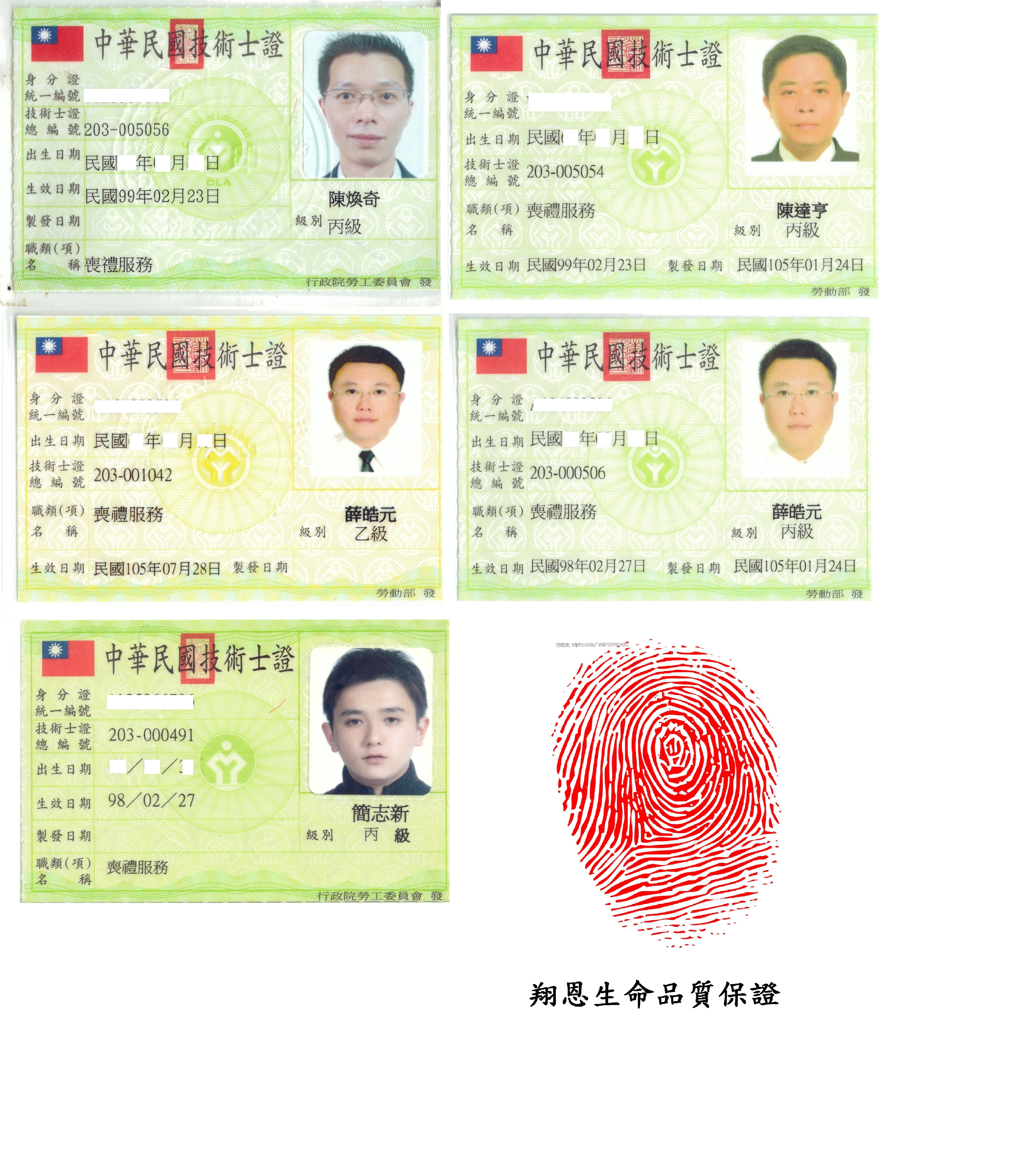 翔恩生命之服務團隊,禮儀服務人員皆依現行法規規定,皆取得喪禮服務丙級技術士之證照,服務人員皆無前科記錄,人員皆有服務超過上千個案之經驗,並有各大型喪禮規劃及國際遺體運輸進出口之實際處理經驗,不用擔心您所拖付的親人交由禮儀公司轉介二手來承辦。